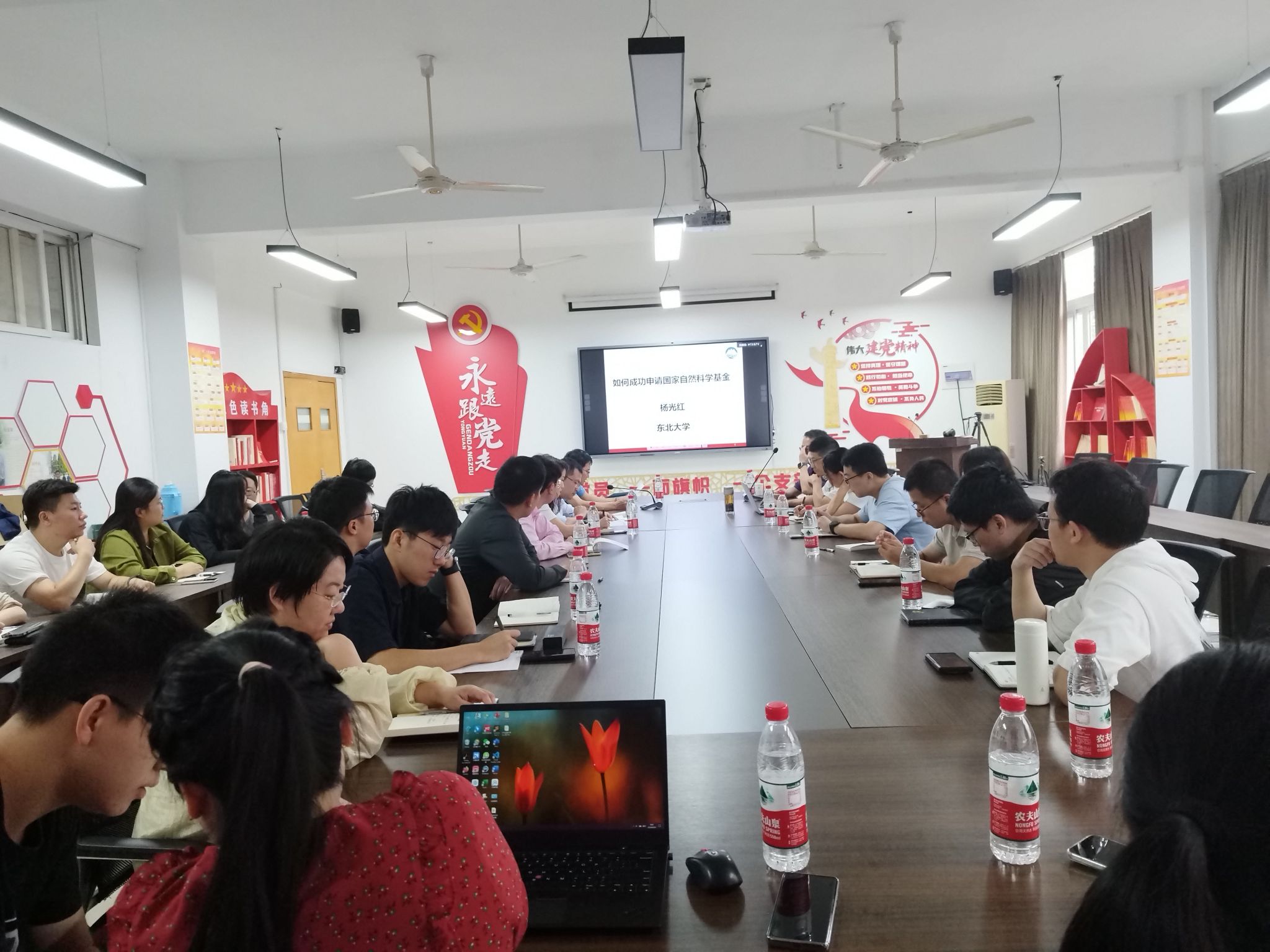 会上,杨光红教授结合自己多年作为国基金评审专家和成功申报的经验,从前期准备、申报书写作以及专家评审等三个方面,举以实例,逐层深入,细致讲解了申请书的撰写方法,并逐一列举每个环节需要注意的事项。杨教授希望老师们在撰写基金申报书时,要理清基础,尽量从前沿热点问题中提炼课题,重视科学问题的凝练与创新性,突出自己及团队工作的亮点,慎重选择关键词与申报领域。他建议老师们在申请书初稿完成后,虚心听取各方意见和建议,不断修改完善打磨申报书,争取完成一份大同行也能看懂的高质量申报书。讲座结束后,与会老师就申报中遇到的具体问题与杨教授进行了交流。