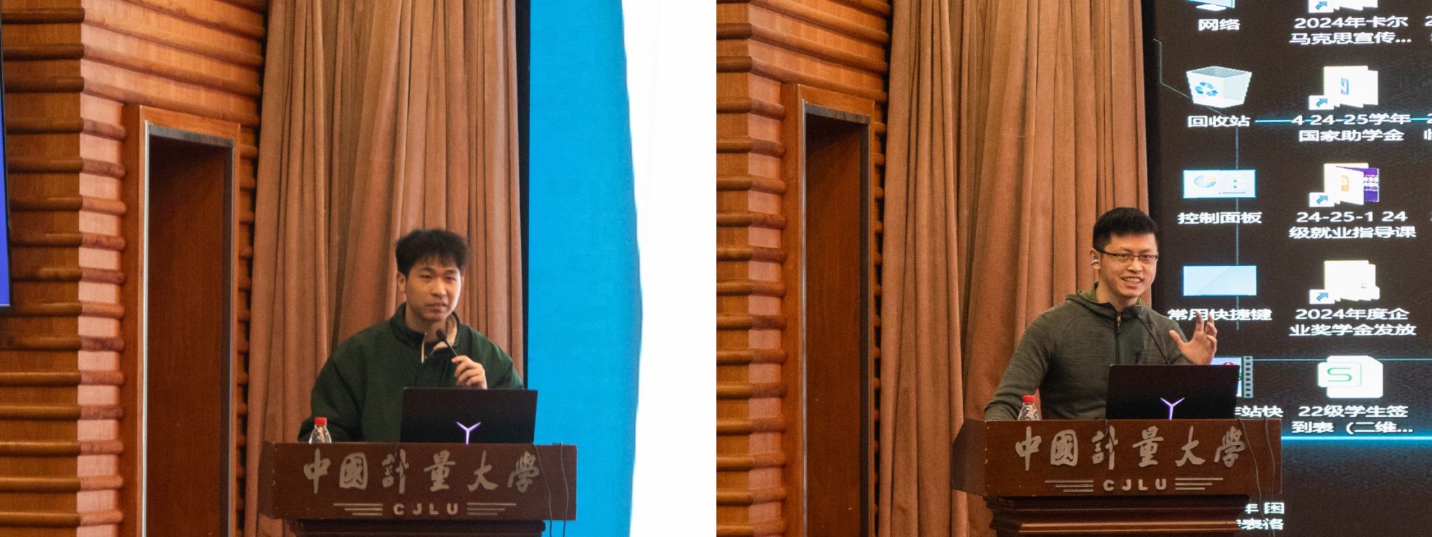 潘星从政策入手,详细解读了研究生招生的最新动向,同时就研究生报考常见问题进行了阐释,为同学们提供了丰富且详实的信息。接着,他从中量大的发展历程、学科优势、师资力量、科研平台、奖助体系和就业前景等方面进行了全面介绍,帮助同学们更深入地了解中国计量大学的研究生教育,鼓励大家积极报考中量大。