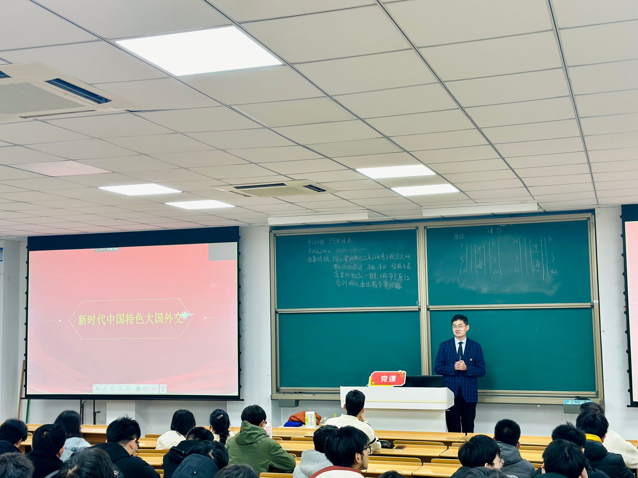 为学习贯彻党的二十届三中全会精神,引导广大师生党员深入学习习近平外交思想,深刻领会中国特色大国外交的世界价值,机电工程学院党委于2024年12月9日举办了主题为“新时代中国特色大国外交的科学内涵和战略布局”的党课。本次党课由马克思主义学院孔伟光担任主讲人,学院120余名学生党员参加。