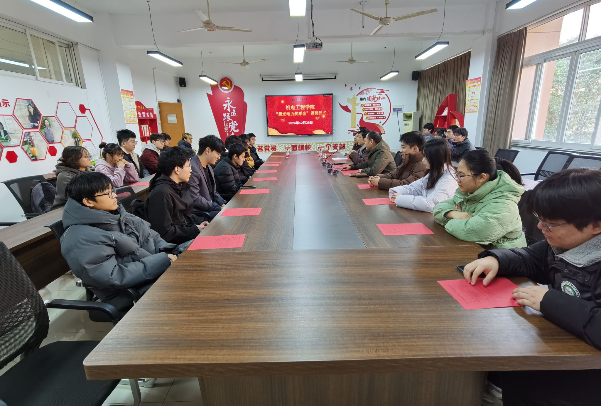 近日,首届“星光电力奖学金”颁奖仪式在机电工程学院仰仪南楼201会议室隆重举行。我校校友、杭州星光电力建设有限公司总经理沈国强,机电工程学院党委书记陈子良等出席了颁奖仪式,22名获奖学生参加了仪式,颁奖仪式由学院党委副书记杨玉书主持。
