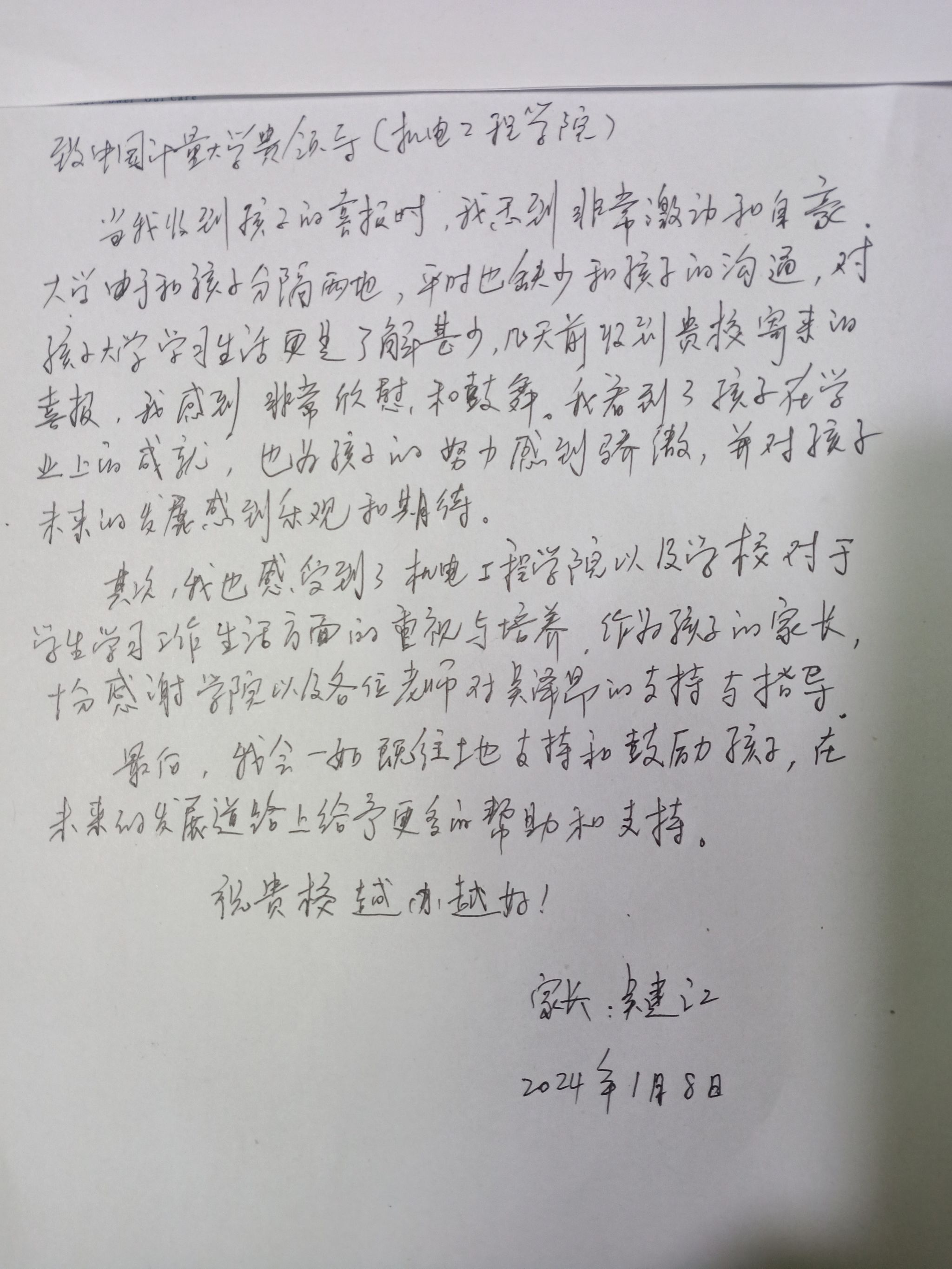 这份喜报不仅是对我学习成绩的肯定,也是对家庭教育成果的认可。感谢学院的鼓励与肯定,让我的家长了解到了我在学校的表现。
