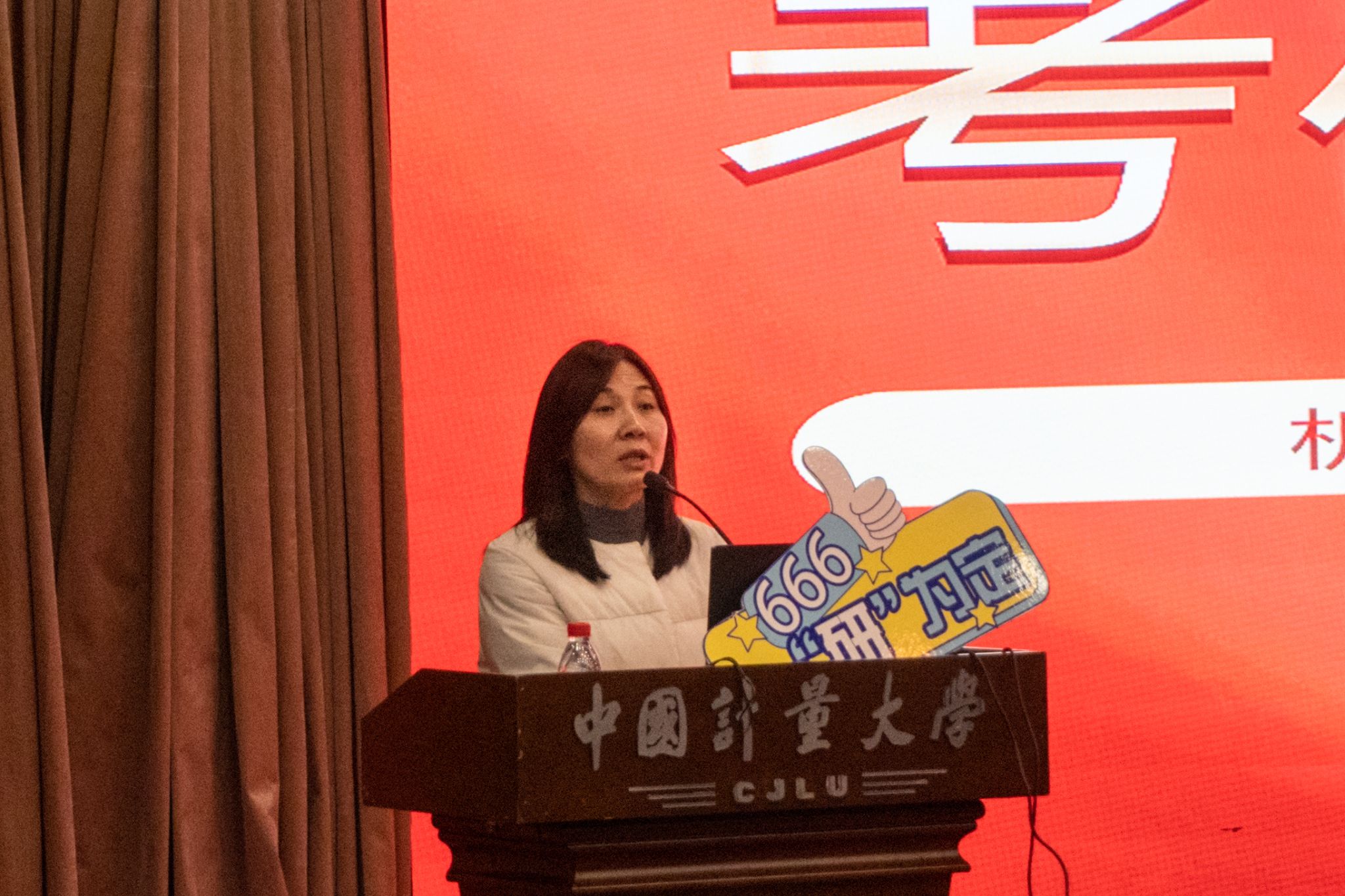 潘星从政策入手,详细解读了研究生招生的最新动向,同时就研究生报考常见问题进行了阐释,为同学们提供了丰富且详实的信息。接着,他从中量大的发展历程、学科优势、师资力量、科研平台、奖助体系和就业前景等方面进行了全面介绍,帮助同学们更深入地了解中国计量大学的研究生教育,鼓励大家积极报考中量大。