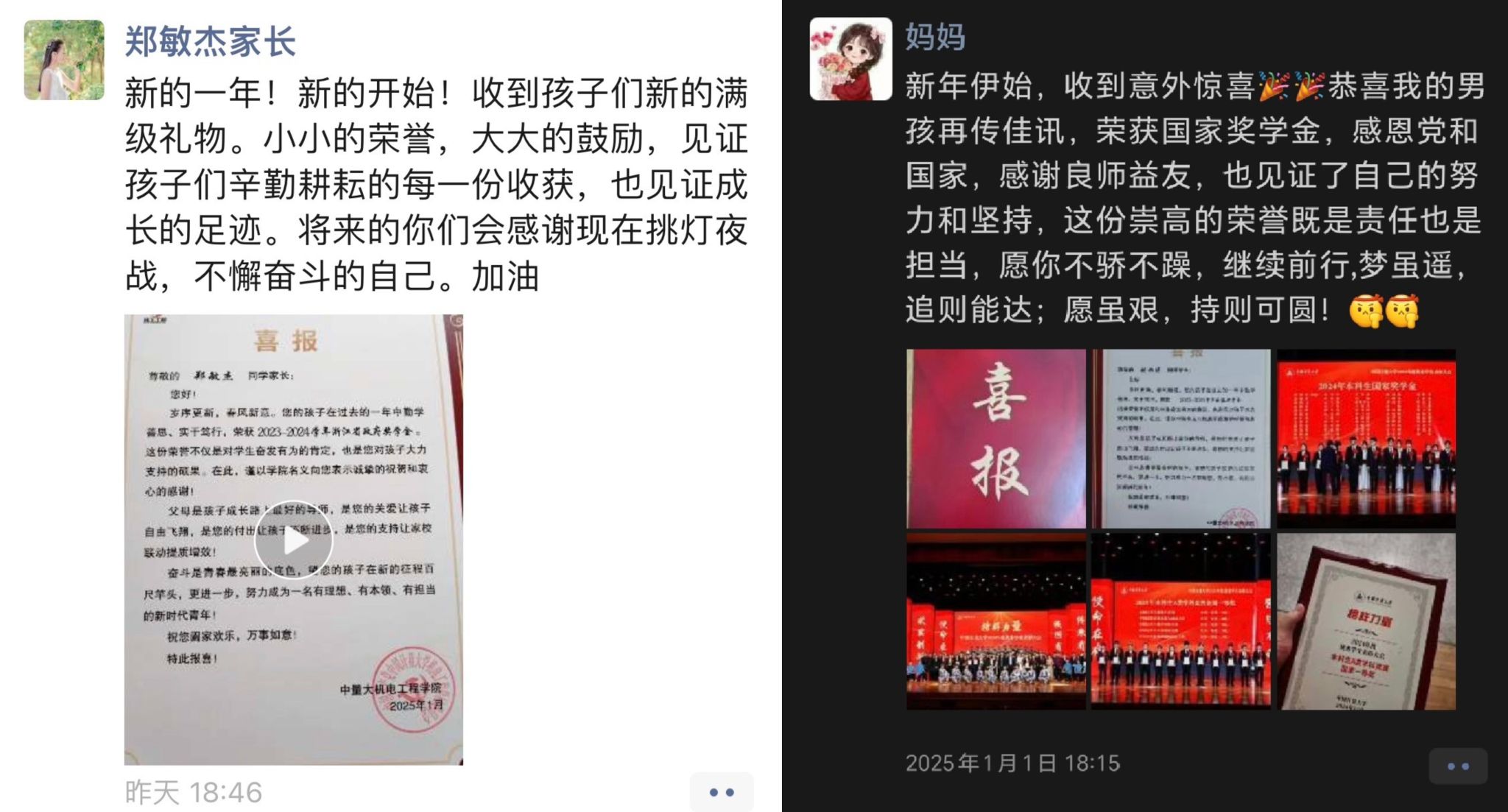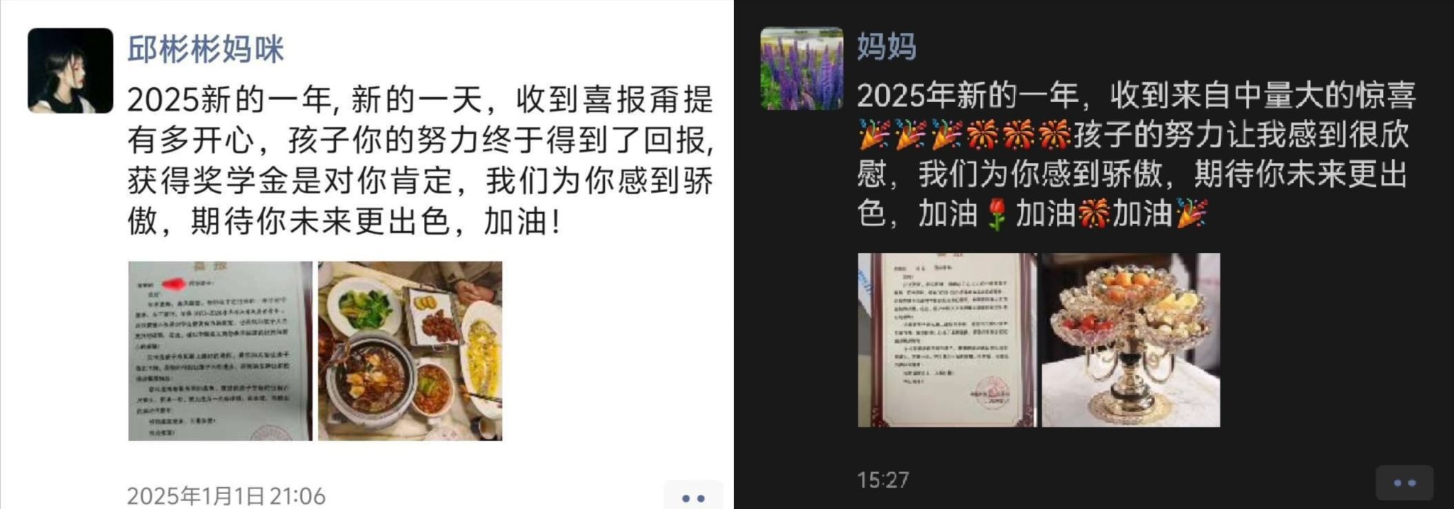 一封封薄薄的喜报蕴含着学院对学生努力进取的认可与成长成才的喜悦,承载着对家长诚挚的问候与家校联动的期盼。2025新年伊始,225份喜报带着学院的祝贺,寄往了28个省份,最远的喜报跨越3800多公里,送到远在新疆维吾尔自治区石河子市的刘雨轩家长手中。家长们收到喜报后难掩喜悦之情,纷纷拍照留念,向亲朋好友们分享孩子在校成长的收获与欣慰之情。