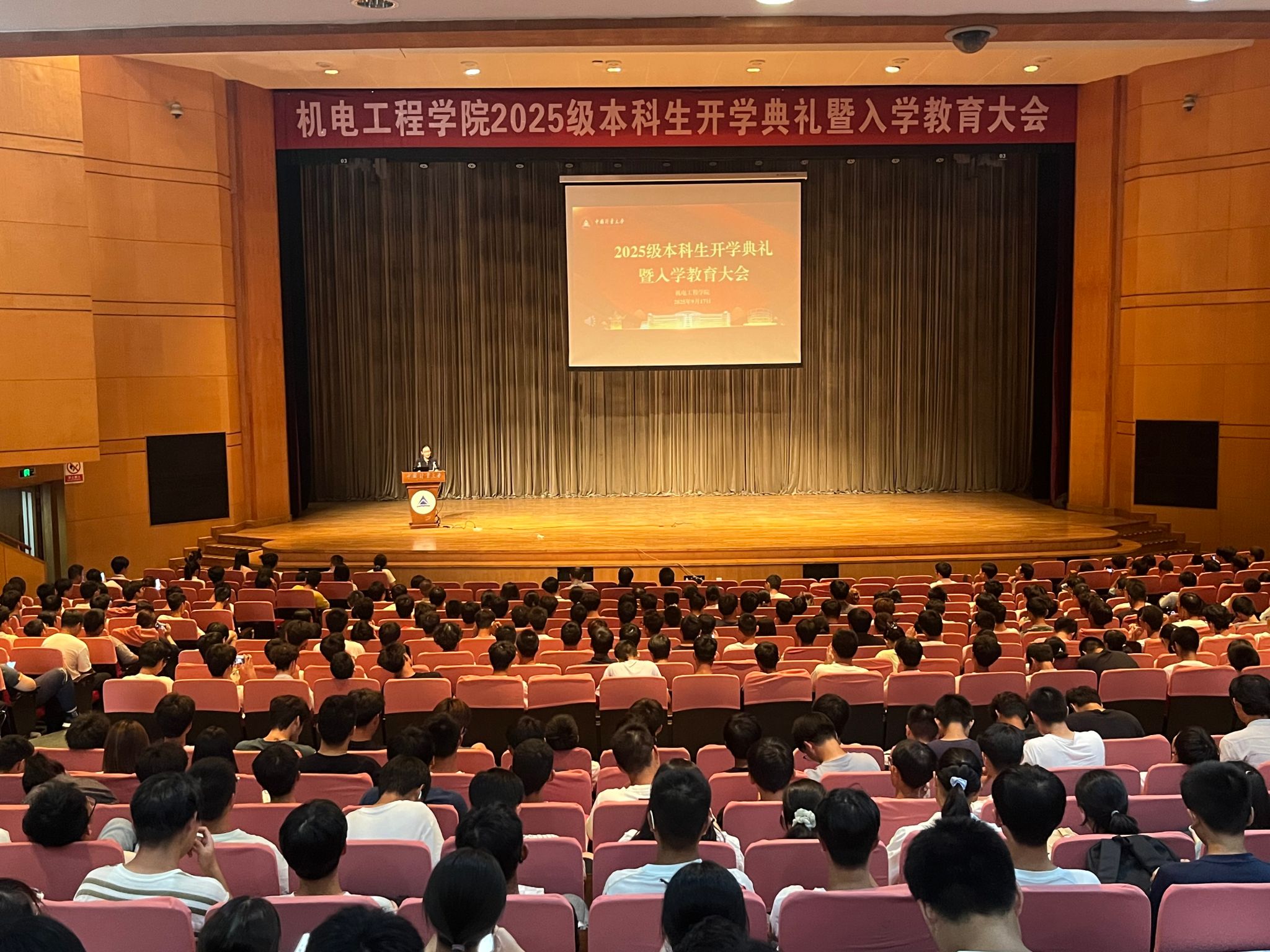 为帮助2025级新生锚定大学成长坐标,营造积极向上的新学期氛围,9月17日下午,机电工程学院在嘉量大会堂隆重举行2025级新生开学典礼暨入学教育大会。机电工程学院院长李运堂,党委书记陈子良,副书记杨玉书,副院长许素安、蔡慧,各专业负责人,教务员,25级新生班主任、辅导员以及全体本科新生参加会议,本次典礼由学院学工主管陈霞红主持。