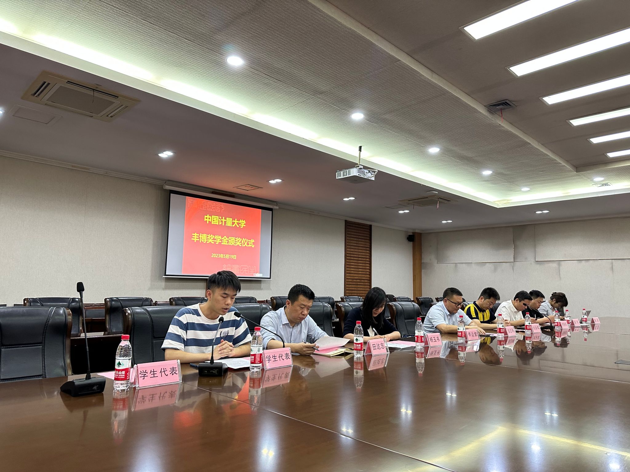 5月19日下午,中国计量大学2022年研究生“丰博奖学金”颁奖仪式在我校闻厅一楼会议室举行。丰博集团执行总裁刘永军、丰博集团研究院副院长李艳军、丰博集团人资经理路伟、丰博集团产业运营中心副主任陈静,校研究生工作部常务副部长邹志刚、机电工程学院党委书记李运堂、计量测试工程学院党委副书记田达志出席颁奖仪式。获奖学生及学院辅导员、毕业班研究生代表共计50余人参加了颁奖仪式。颁奖仪式由机电工程学院党委副书记杨玉书主持。