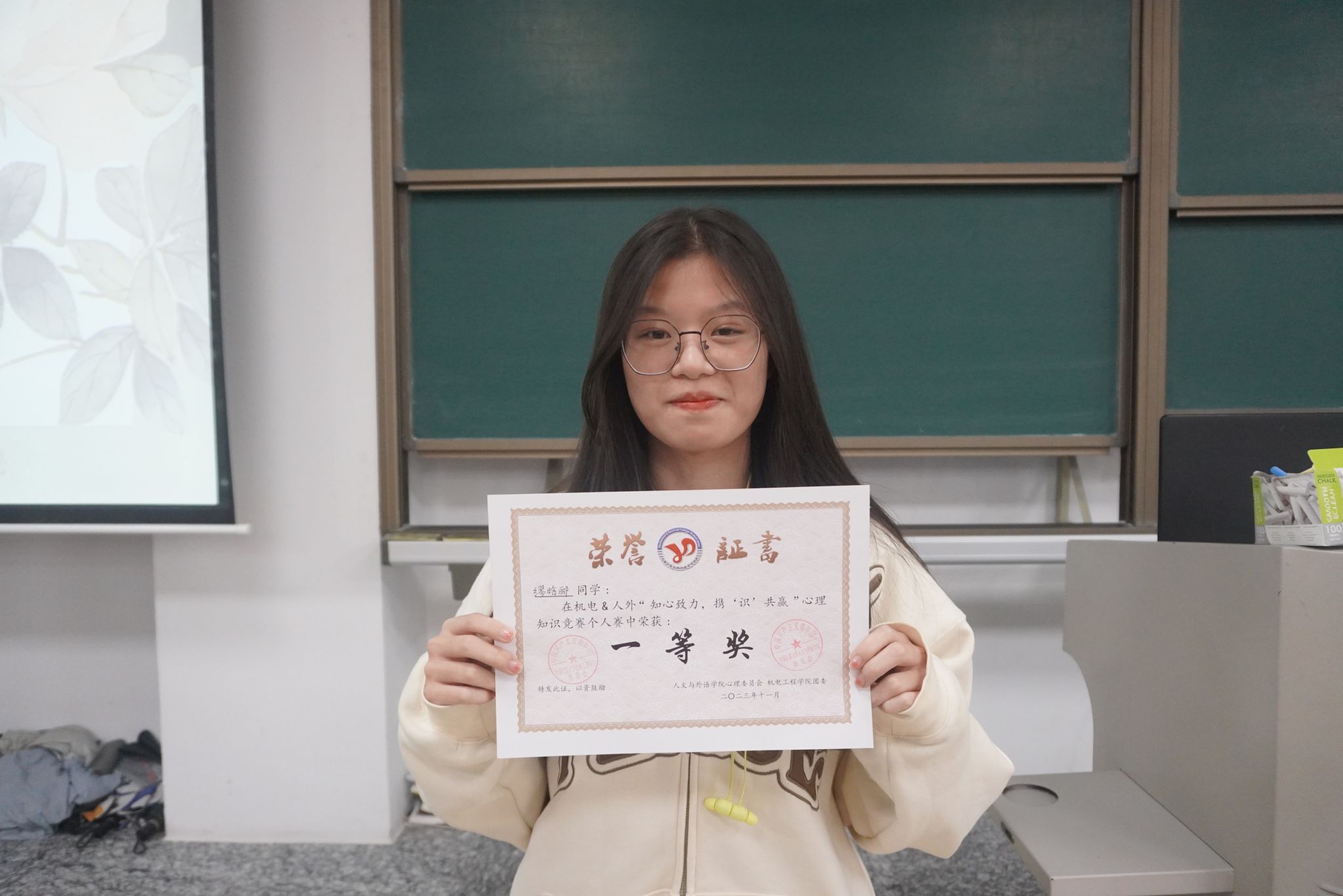 为普及心理健康知识,引导学生积极关注心理健康教育工作,营造良好的校园文化氛围,11月15日晚,机电工程学院团学组织心理健康权益部联合人文与外语学院心委会举办了 “知心致力,携'识'共赢”心理知识竞赛,来自两个学院的8支学生代表队与8名同学报名参加比赛,机电工程学院心理辅导员潘逦瑛、主席朴胜禄,人文与外语学院学生会主席周佳欣,叶阳应邀出席比赛。