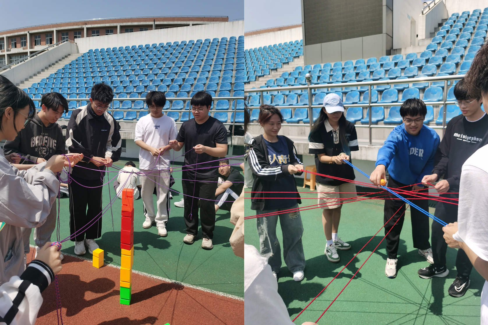 为全面提升学生心理健康水平,培养团队协作精神,4 月 25 日,机电工程学院二级心理辅导站联合心理健康教育课程授课教师,为 2024 级机自 1、2 班同学开展了一场别开生面的朋辈集体团辅活动。本次活动以"携手同行,从心出发"为主题,通过系列趣味互动游戏,让学生在轻松愉快的氛围中体验信任的力量,感受团队协作的魅力。