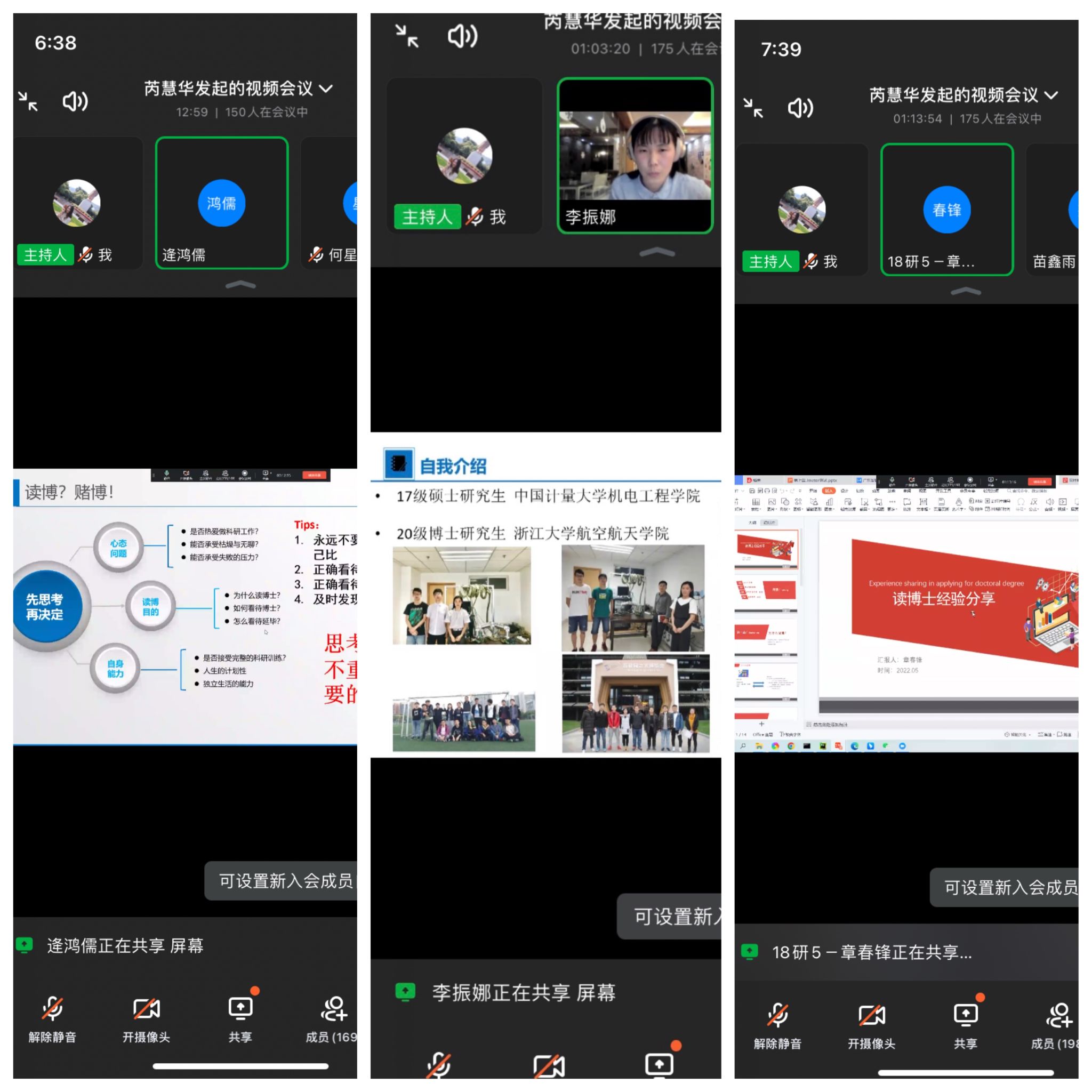 为激发研究生科研的内生动力,提升科研创新的积极性,培养严谨求实的科研作风,提高博士研究生升学率,加大申博工作的开展力度,机电工程学院于5月17日举办了第四期“研思·求索”学术沙龙活动——“在读博士分享”专场,学院特别邀请到2017级校友、浙江大学在读博士李振娜,2018级校友、上海交通大学在读博士逄鸿儒,2018级校友、华南理工大学在读博士章春锋作为主讲人进行在线分享,2020级、2021级170余名研究生参加活动。