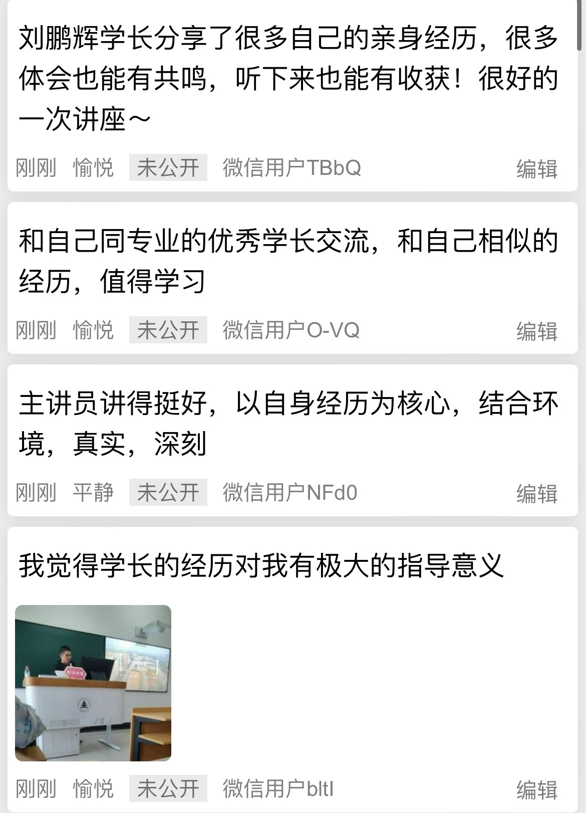 值此45周年校庆之际,机电工程学院“积淀讲堂”第2讲邀请到2023届优秀校友刘鹏辉作为主讲人于10月17日在环宇楼D202开讲,100余位低年级学生报名参加,活动由学院学风建设工作负责老师许程晨主持。