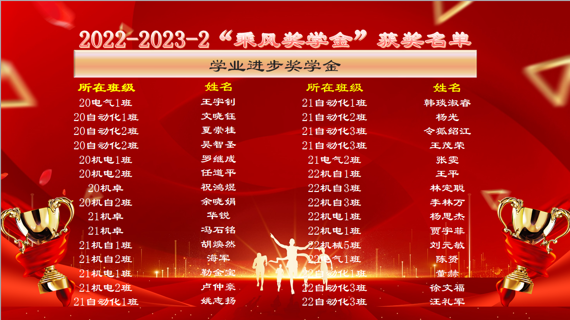 为加强资助育人工作的顶层设计,不断完善学院资助育人工作体系,鼓励学院家庭经济困难学生勤奋学习,积极参加社会活动,培养学生实践精神和创新能力,机电工程学院为全日制本科家庭经济困难学生单独设置了“乘风奖学金”。