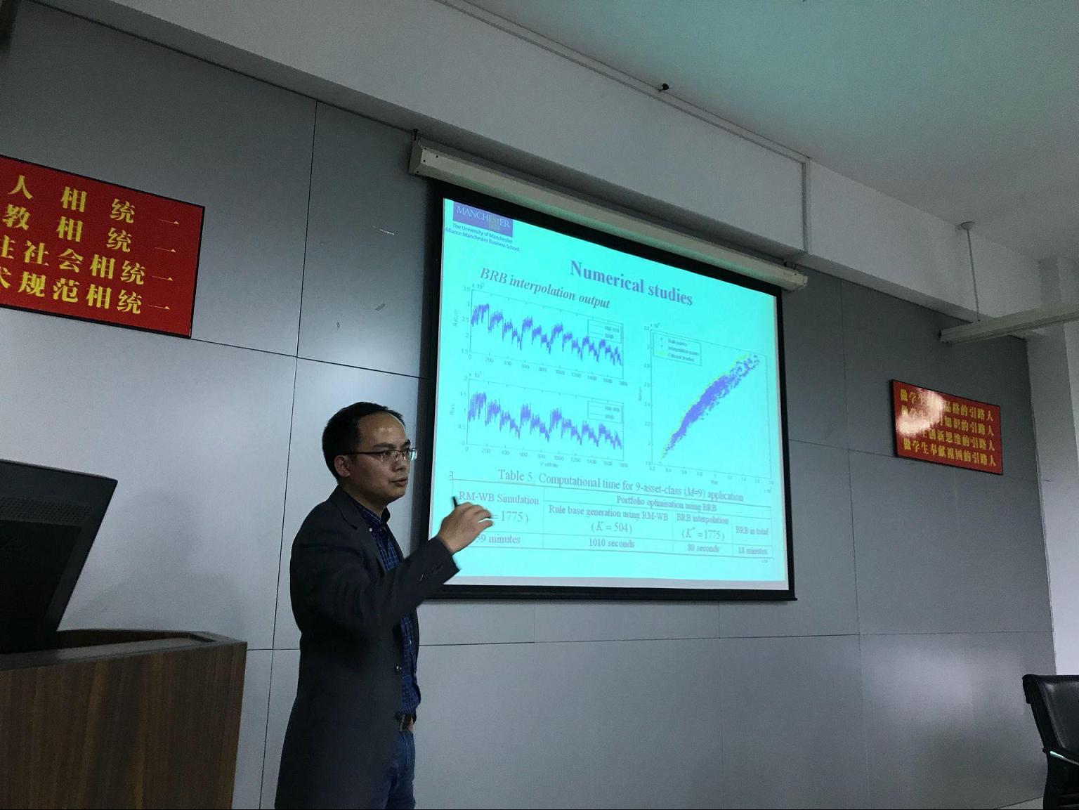在题为“Decisionanalytics using data-driven modeling and evidential reasoning”的学术报告中,陈博士介绍了不同领域基于数据分析、证据推理方法的一些相关课题研究成果。涉及高铁的安全信息分析决策、市场的信息数据分析及多指标决策等热点问题研究。报告中陈玉旺博士所分析的问题原型及方法,为我们解决在相关领域的基于数据分析及多指标决策问题,带来了一种新的研究方法和解决方式。