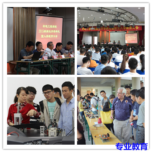 作为理工科特色鲜明的二级分院,机电工程学院不仅注重对学生理论知识的灌输,而且突出对学生实践动手能力的培养。在2015级学生入学之初,学院电气、机电、机械及自动化四个专业的负责人与相关专业老师就专门组织以专业为单位的师生见面会,为同学们详细解读大学四年的专业学习任务,为同学们大学四年的学习开了一个好头。为了给2015级学生营造更加真实、切身的专业体验,学院为他们精心组织了机电学院大学生创新成果展暨新生交流会,一件件凝聚了机电学子智慧与心血的课外科技作品活生生地展示在新生的面前,同学们在感叹学长学姐才华与能力的同时,也更加坚定了要努力学习,不负机电学子身份的决心。此外,学院还联系各个专业的实验室,分班级、分批次组织2015级学生参观学院的实验室,进一步给同学们提供了更直观的专业体会。