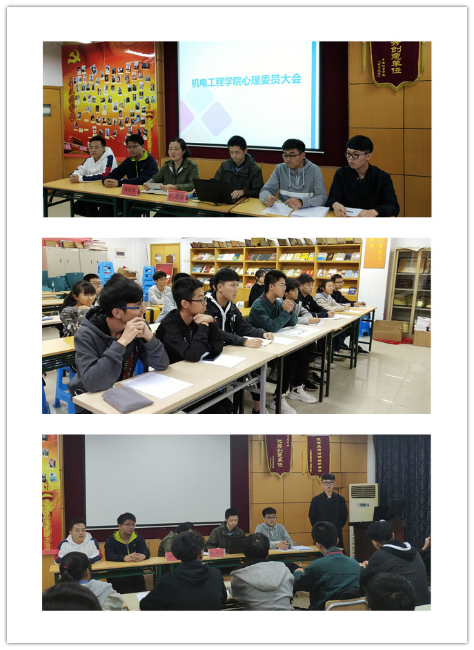 心理委员是学校心理健康教育四级网络中重要的一环,为帮助18班级心理委员更快的进入工作角色,顺利开展班级心理工作,11月7日下午,机电工程学院“馨约心空”心理健康工作站在仰南201召开了心理委员交流会。学院心理辅导员陆维维、18级辅导员杜通波、心理中心全体成员、校级优秀心理委员17电气类2班程一峰和18级心理委员参加了本次大会。