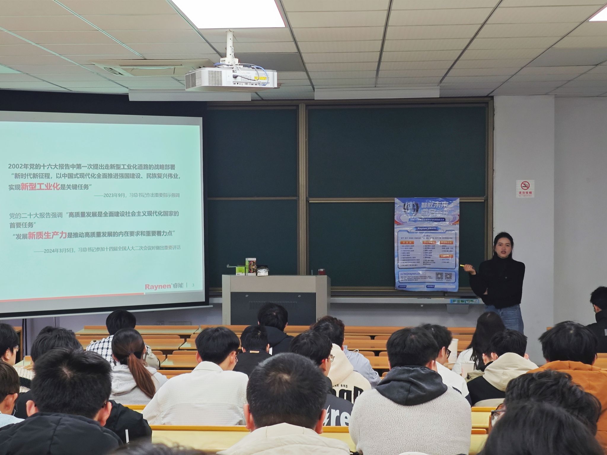 睿能科技自2007年成立以来,始终秉持技术创新与人才培养并重的理念,积极推动企业的可持续发展与行业进步,已迅速发展成为国内工业自动化控制产品领域的佼佼者。宣讲会上,招聘经理卢凤英通过企业宣传片,详细介绍了公司的发展历程、业务领域、技术创新以及员工福利等关键信息。随后的问答环节中,卢凤英及招聘组成员与现场同学进行了深入而细致的交流,耐心解答同学们关于公司文化、岗位需求、职业发展等方面的疑问,增强了他们对未来就业的信心与期待。