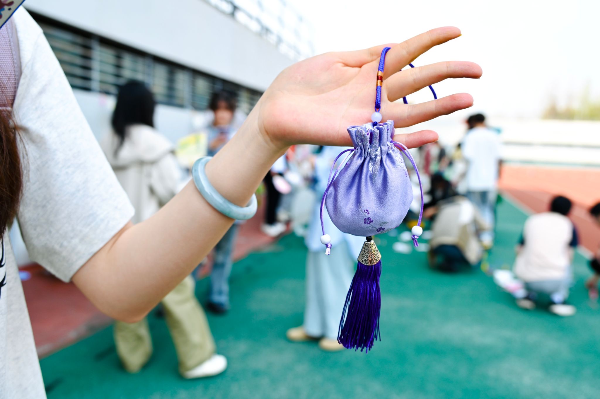 香囊,作为中国传统民俗文化的重要载体,不仅具有装饰作用,还蕴含着驱邪避瘟、祈福纳祥的美好寓意。漆扇制作环节结束后,活动进入了香囊制作环节。同学们围坐在一起,挑选自己喜欢的香料,将它们小心翼翼地装入精美的香囊袋中。在制作过程中,大家相互交流、相互帮助,分享着制作香囊的乐趣和心得。“亲手制作香囊,让我感受到了传统文化的温度。这个香囊我要送给我的家人,希望它能给他们带来健康和好运。”参与的李同学说道。