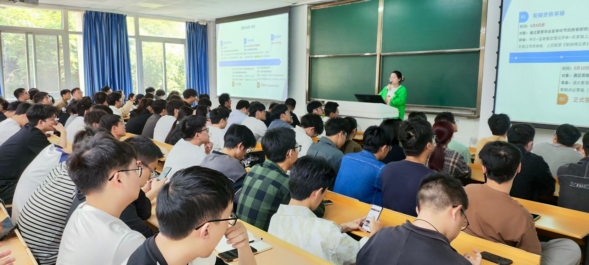 会上,研究生教学秘书罗露围绕毕业论文答辩,向同学们详细介绍了答辩流程、注意事项、材料提交等,建议同学们根据自己所处批次,调整好心态,认真准备论文答辩,争取顺利毕业;根据学校新出台的硕士学位授予工作细则,她向同学们一一讲解了细则的变化和对申请硕士学位的影响,鼓励同学们追求更高水平的科研创新。接着,2022级年级辅导员陈霞红从心理调适、择业与就业、就业协议书、档案去向、党团组织关系转接、户口迁移、助学贷款确认等方面作了详细介绍,要求所有同学们紧紧围绕个人发展,合理安排好毕业与就业事宜,同时注意及时调整心态、释放压力,健康、安全、顺利、圆满地走出大学校园。会议同时就意识形态安全、网络安全、人身财产安全、学术诚信、校友工作等进行了强调。最后,学院党委副书记杨玉书对会议进行总结并对2022级研究生提出了三点殷切嘱托:一是要恪守学术规范,以严谨态度完成毕业论文答辩准备,充分展现研究成果的学术价值与应用价值;二是要慎重择业与就业,要理性研判就业形势,将个人专业优势与国家战略需求相结合,努力实现高质量就业;三是要关注身心健康,及时疏解毕业季压力,遇到心理困境,要及时寻求老师、同学和专业机构的帮助,以积极心态迎接人生新阶段。