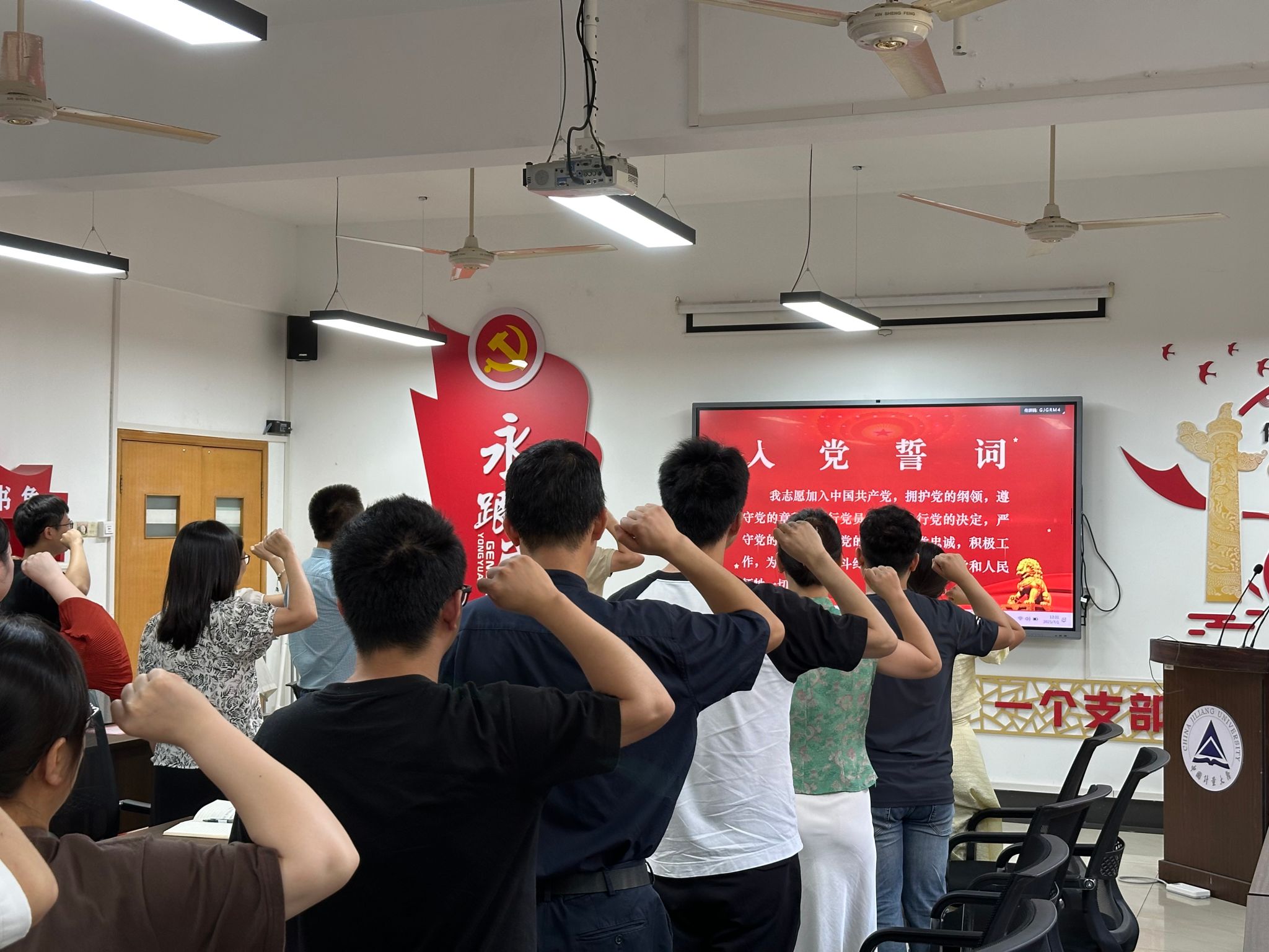为庆祝中国共产党成立104周年,赓续红色血脉,凝聚奋进力量,7月1日当天,机电工程学院党委组织开展“七一”主题党日活动,通过优秀表彰、入党宣誓和同上一堂主题党课等形式,引导师生党员筑牢信仰之基,淬炼入党初心,不断展现新时代共产党员新作为。学院40余名师生党员参加活动,活动由学院党委书记陈子良主持。
