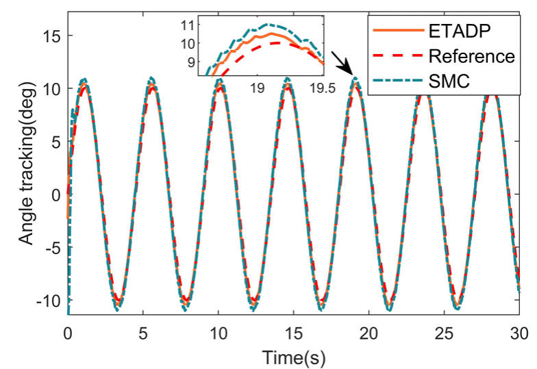 o 跟踪精度提升:角度跟踪最大误差仅0.53°(滑模控制SMC为1°),角速度误差降低至0.57°/s(SMC为1.4°/s);
