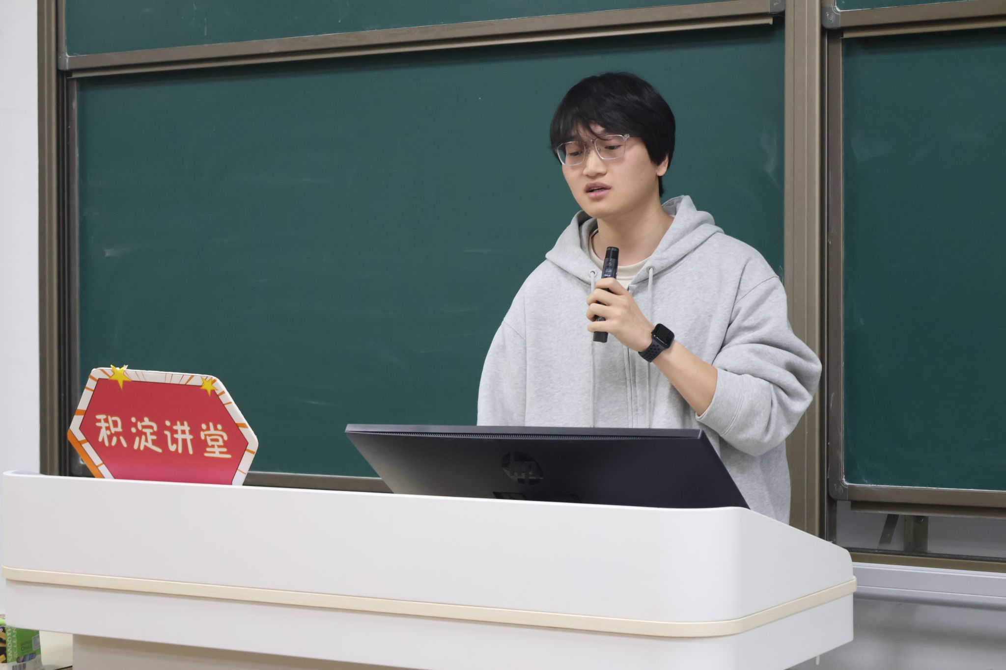 在个人经历分享环节,卢宇康复盘了自己深耕竞赛、北京实习历练、考研调剂攻坚到最终选到心仪导师进组开展研究的完整历程,坦诚分享了考研备考中的坚持与调剂过程中的取舍,为面临相似困境的学生提供了真实参考。互动环节中,同学们围绕竞赛组队、考研调剂技巧、就业方向选择等问题积极提问,卢宇康结合自身经历逐一耐心解答,现场交流氛围热烈。