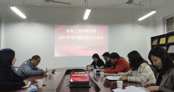 为深入学习贯彻党的二十大精神,持续推进全面从严治党和党风廉政建设向纵深发展,根据学校党委统一部署,12月7日上午,机电学院召开2022年党风廉政建设分析会,校党委委员、副校长金尚忠,校纪检监察室副主任朱盈到会指导。机电学院领导班子成员参加会议,会议由学院党委书记李运堂主持。